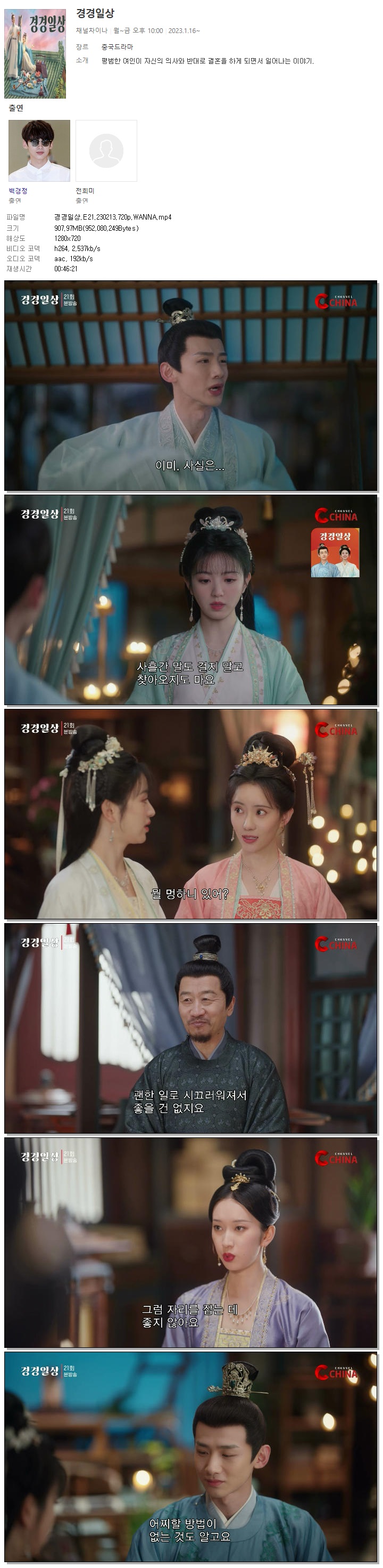 | 경경일상.E21.230213.720p.WANNA.mp4 | 908 M | 00:46:21 | 1280x720 |