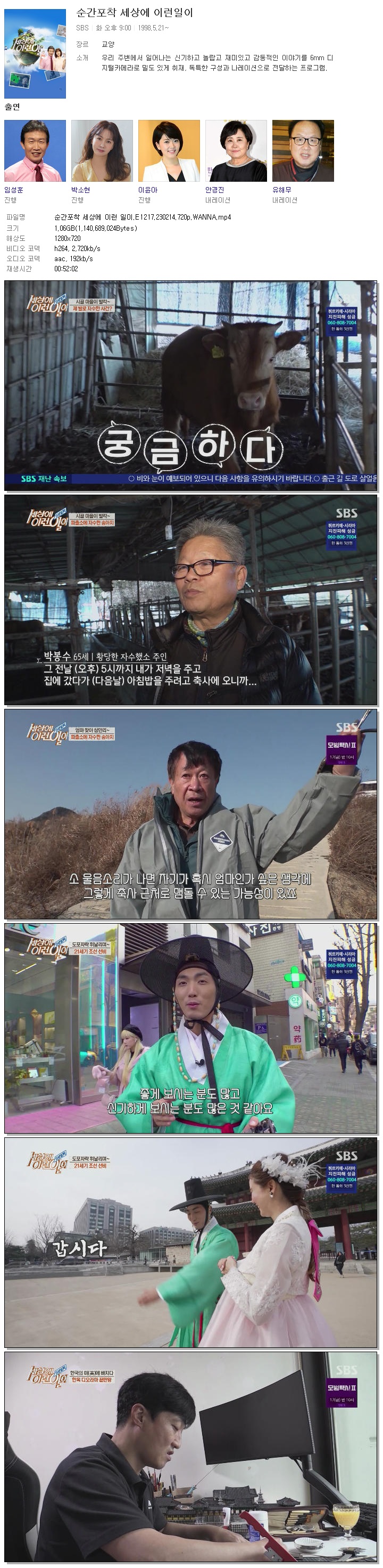 | 순간포착 세상에 이런 일이.E1217.230214.720p.WANNA.mp4 | 1.1 G | 00:52:02 | 1280x720 |