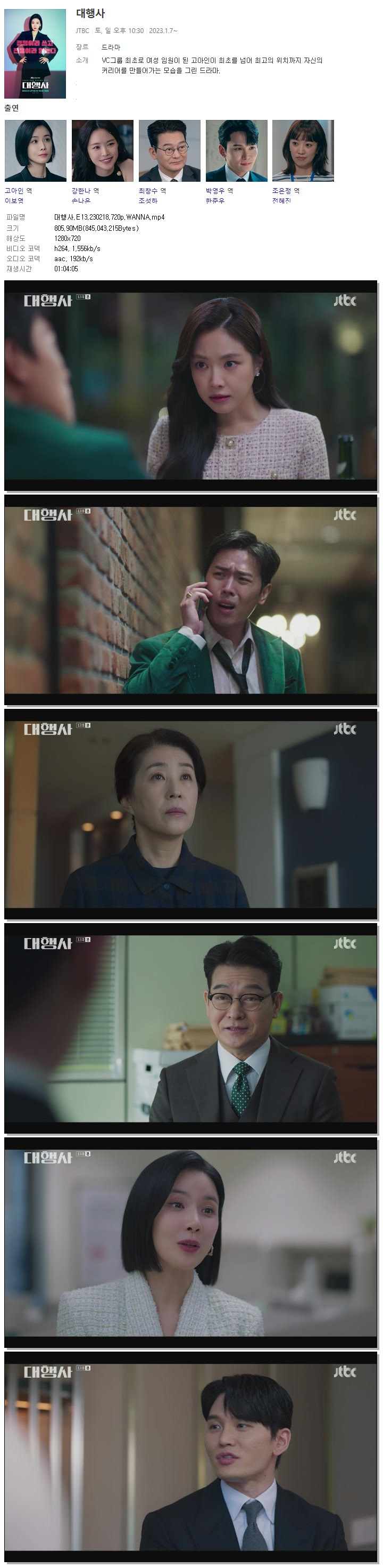 | 대행사.E13.230218.720p.WANNA.mp4 | 805.9 M | 01:04:05 | 1280x720 |