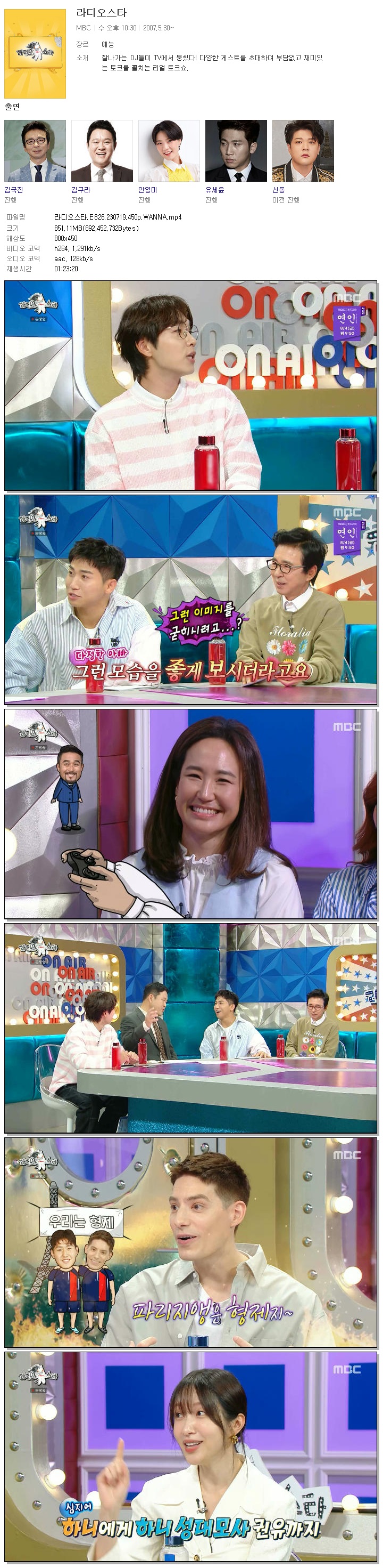 | 라디오스타.E826.230719.450p.WANNA.mp4 | 851.1 M | 01:23:20 | 800x450 |