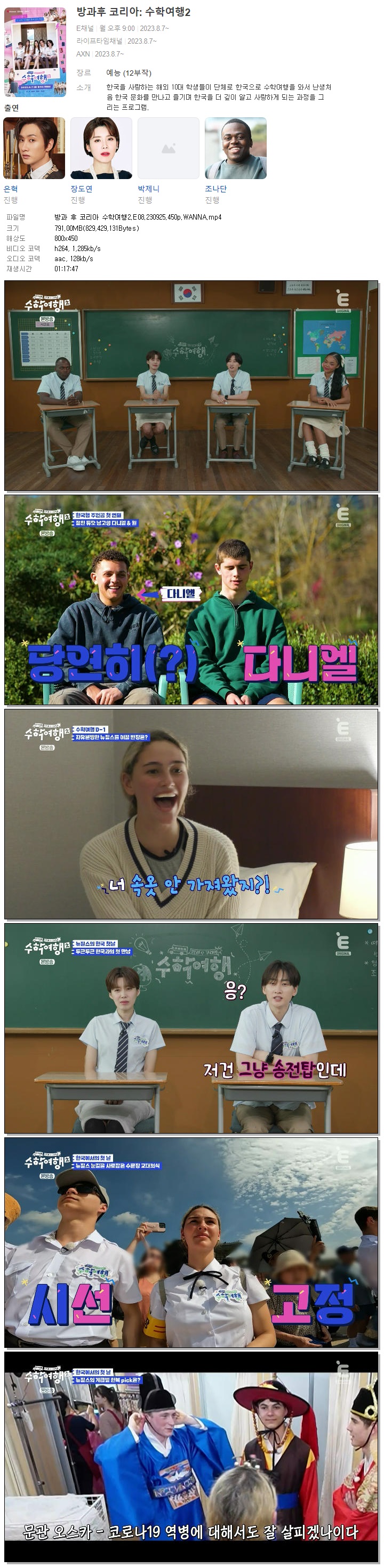 | 방과 후 코리아 수학여행2.E08.230925.450p.WANNA.mp4 | 791 M | 01:17:47 | 800x450 |
