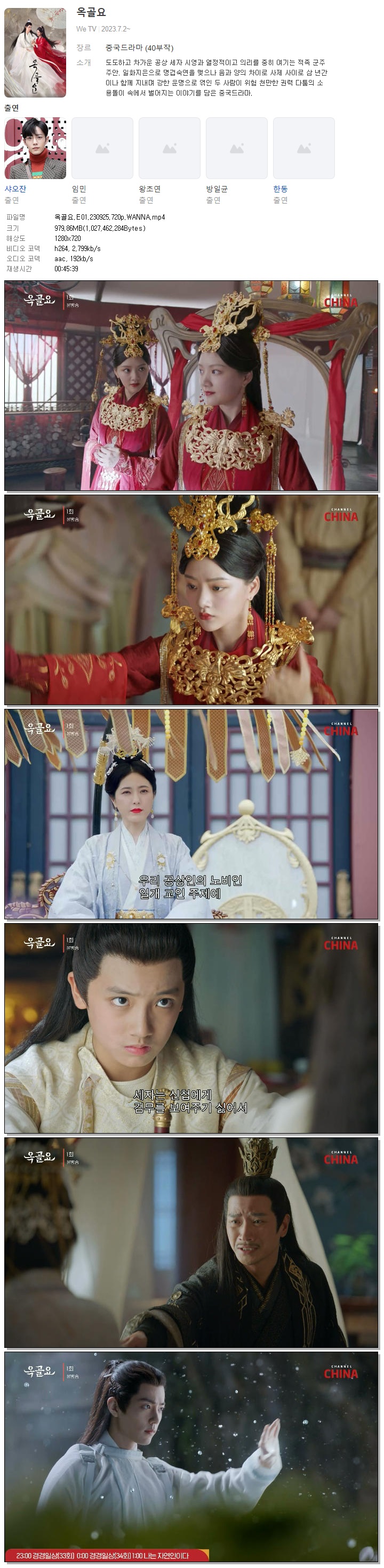 | 옥골요.E01.230925.720p.WANNA.mp4 | 979.9 M | 00:45:39 | 1280x720 |