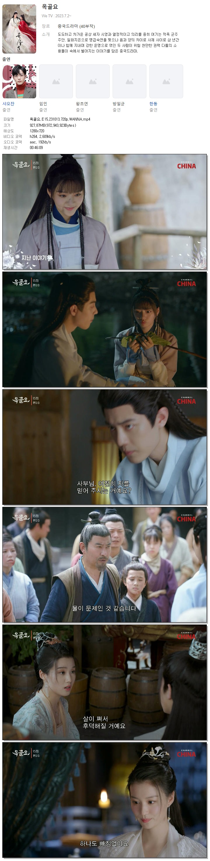 | 옥골요.E15.231013.720p.WANNA.mp4 | 927.9 M | 00:46:09 | 1280x720 |