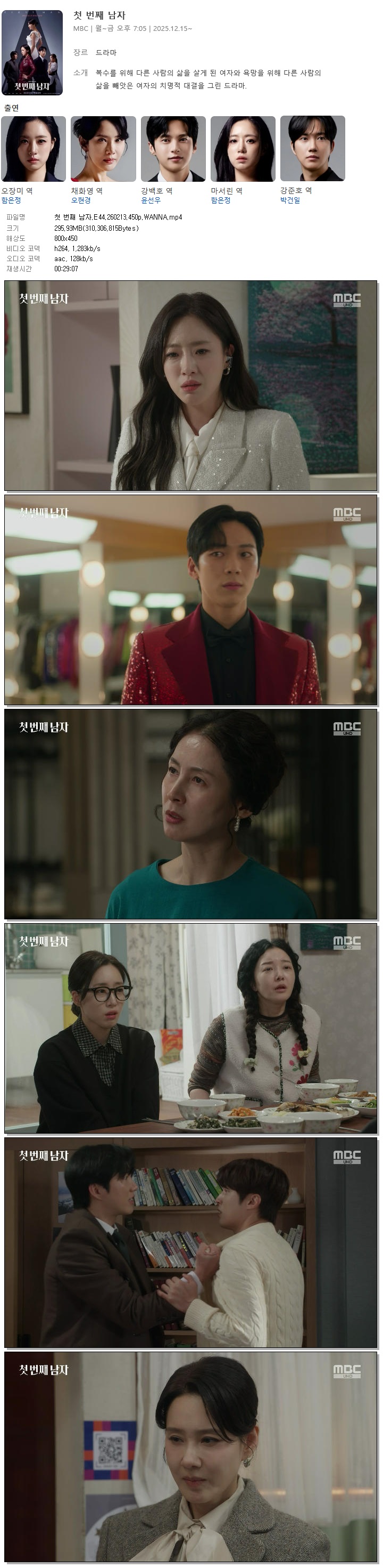 | [MBC] 첫 번째 남자.E44.260213.450p.WANNA[함은정, 오현경].mp4 | 295.9 M | 00:29:07 | 800x450 |