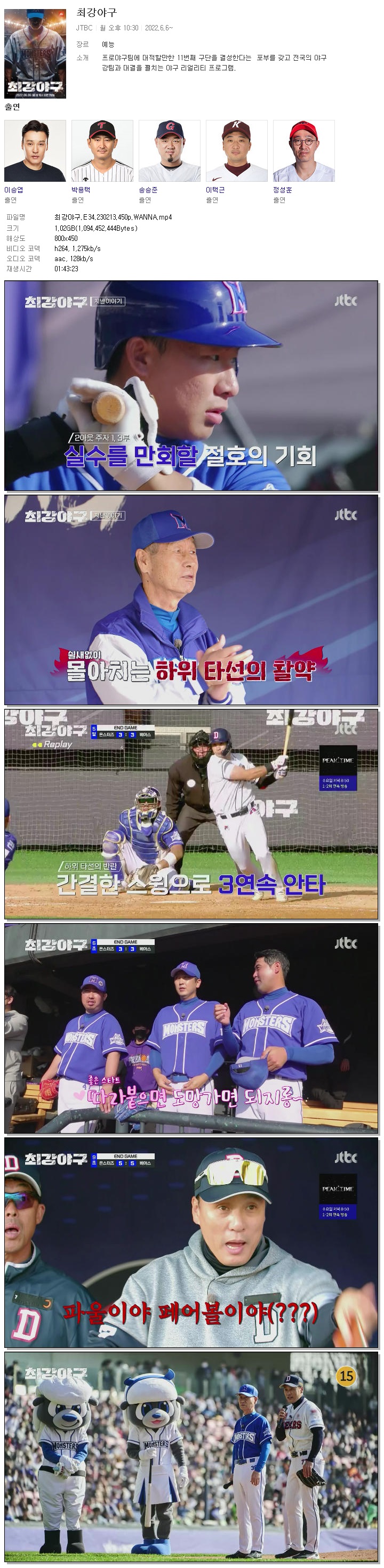 | 최강야구.E34.230213.450p.WANNA.mp4 | 1 G | 01:43:23 | 800x450 |