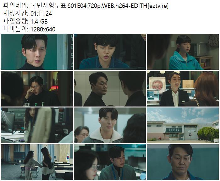 | 국민사형투표.S01E04.720p.WEB.h264-EDITH[eztv.re].mkv | 1.4 G | 01:11:24 | 1280x720 |
